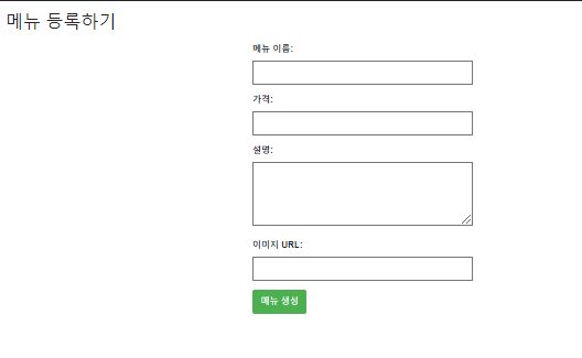 - 업장 내에서 동일한 메뉴 이름으로는 재등록이 되지 않습니다. (o: 중복 방지 적용)
