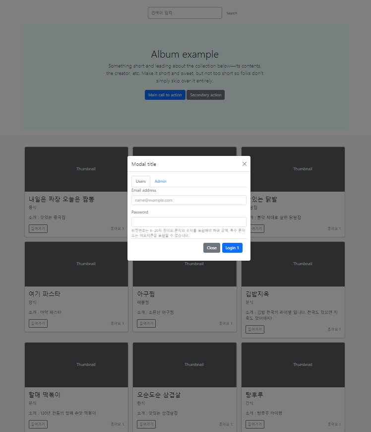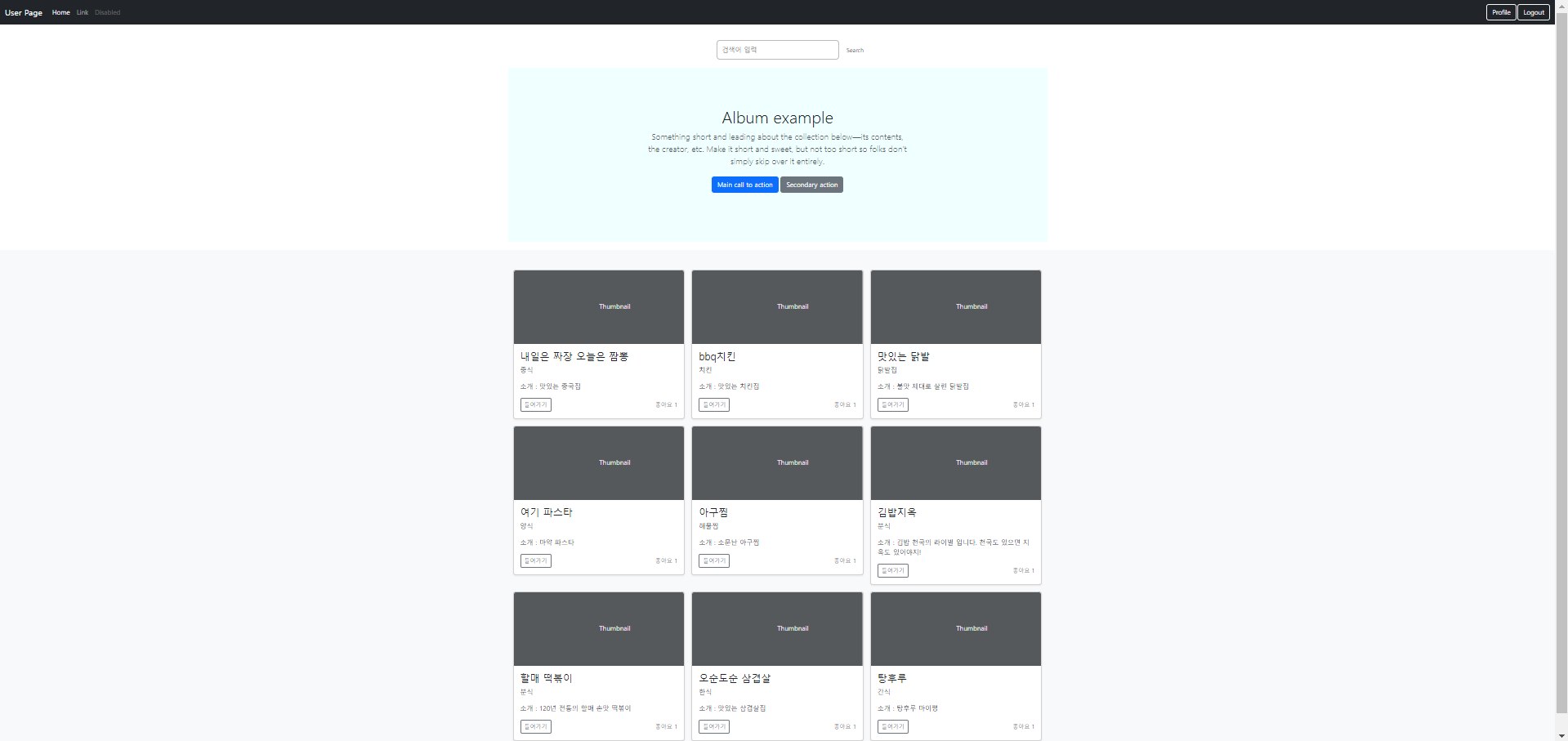- “사장님” 및 “고객님”은 키워드 기반으로 음식점을 검색하여 볼 수 있어야 합니다. (o: 모두 검색 가능)
