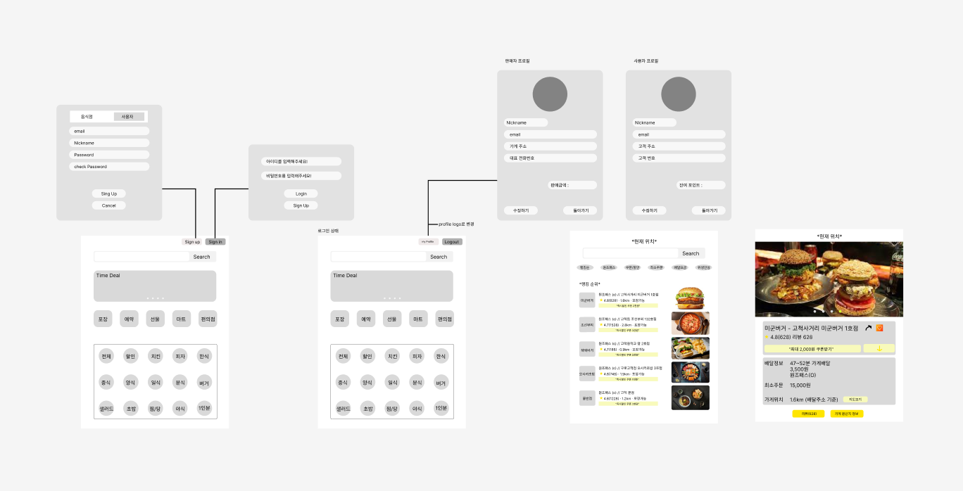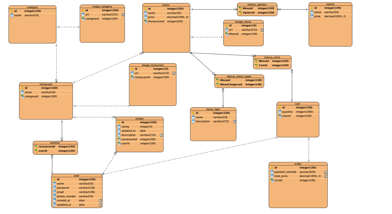 개발 프로세서 가이드에서 주어진 펫시터 매칭 서비스 또는 음식 배달 서비스 중 선택할 수 있었습니다. 우리 팀은 기능이 다양하고 구현이 복잡한 음식 배달 서비스를 선택하여 프로젝트를 진행하게 되었습니다