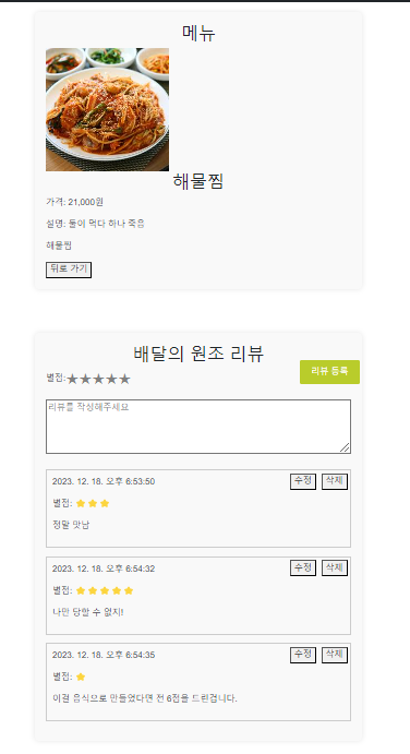 - “고객님” - 리뷰 및 평점 관련 CRUD 기능