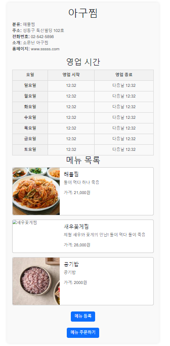 - “사장님”은 “고객님”들이 주문한 배달 메뉴를 확인할 수 있어야 합니다. ( x : front와 연동이 안됨)