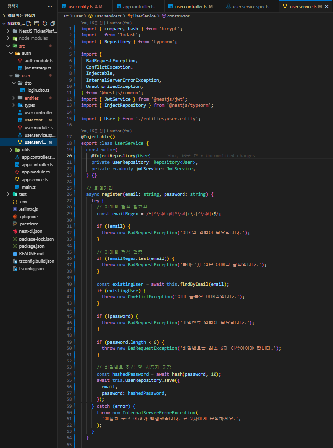 NestJS_온라인 공연 예매 서비스 프로젝트 3편_유저기능 구현(회원가입 및 로그인[上])