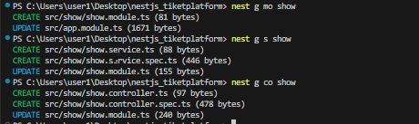 nest g mo show nest g s show nest g co show