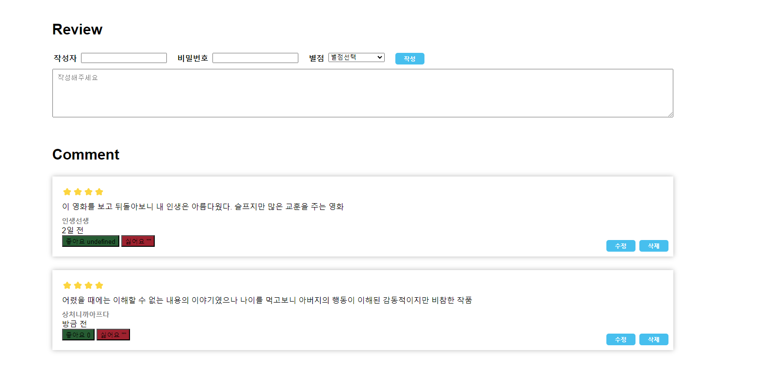 saveToLocalStorage(writer, pwd, content, star, timestamp); // 시간 정보를 저장