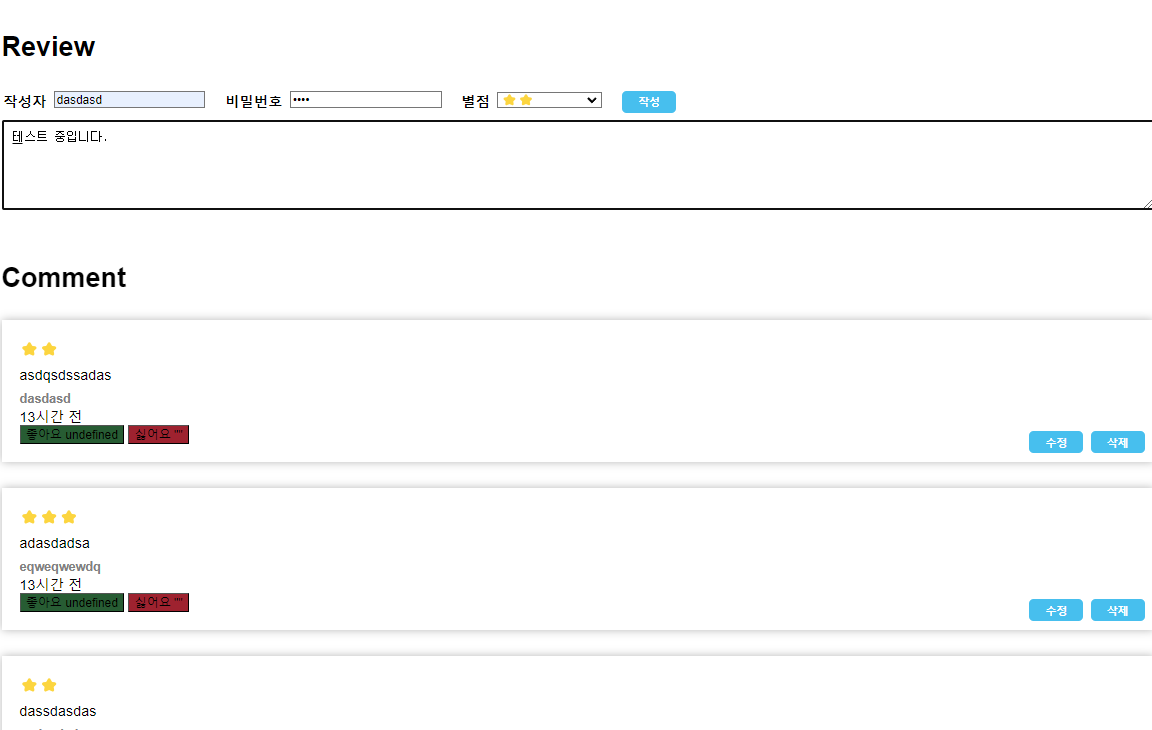 4) `toggleLikeDislike(commentId, action)` 함수를 이용해 좋아요 싫어요 버튼을 토글하여 댓글의 상태를 추적하고 로컬스토리지에 저장합니다.