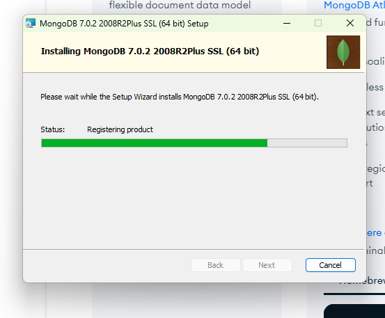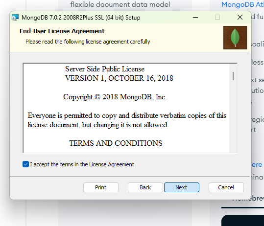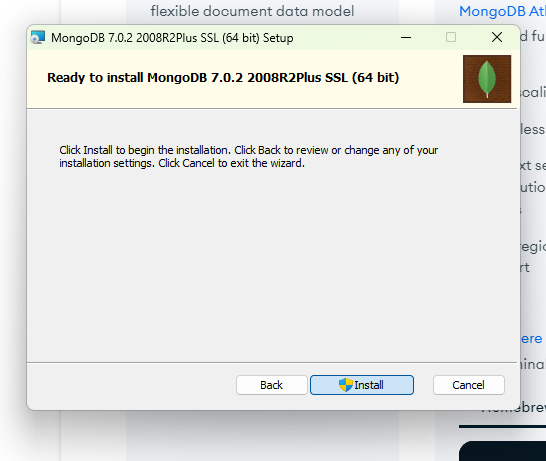 Install MongoDB Compass 선택을 해제하고 Next를 클릭합니다.