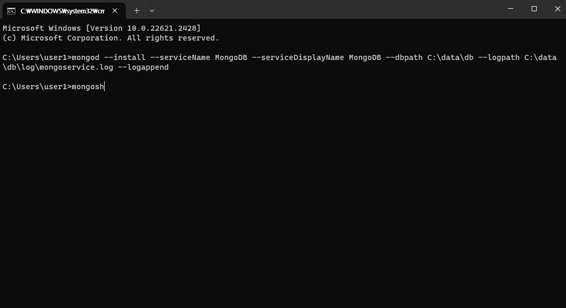 mongod --install --serviceName MongoDB --serviceDisplayName MongoDB --dbpath C:\data\db --logpath C:\data\db\log\mongoservice.log --logappend