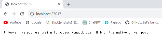 It looks like you are trying to access MongoDB over HTTP on the native driver port.가 뜨면