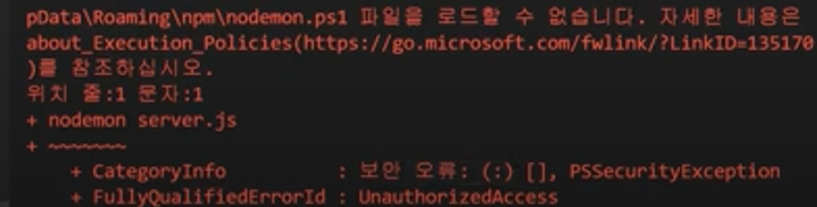 # nodemon을 해결하는 첫 번째 방법! (Powershell 보안 오류시 )