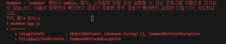 # nodemon을 해결하는 첫 번째 방법! (Powershell 보안 오류시 )