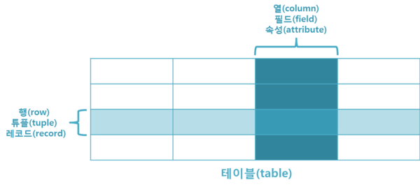 테이블(Table): 서로 연관된 레코드의 집합을 의미합니다.