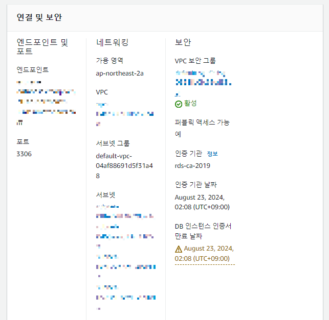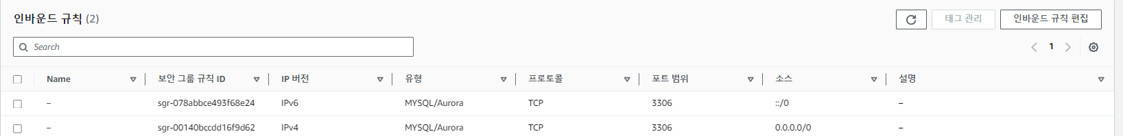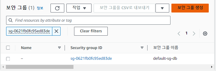 ** 생성한 DB식별자 클릭-> VPC 보안 그룹 -> 보안그룹 생성 클 순으로 이동합니다.