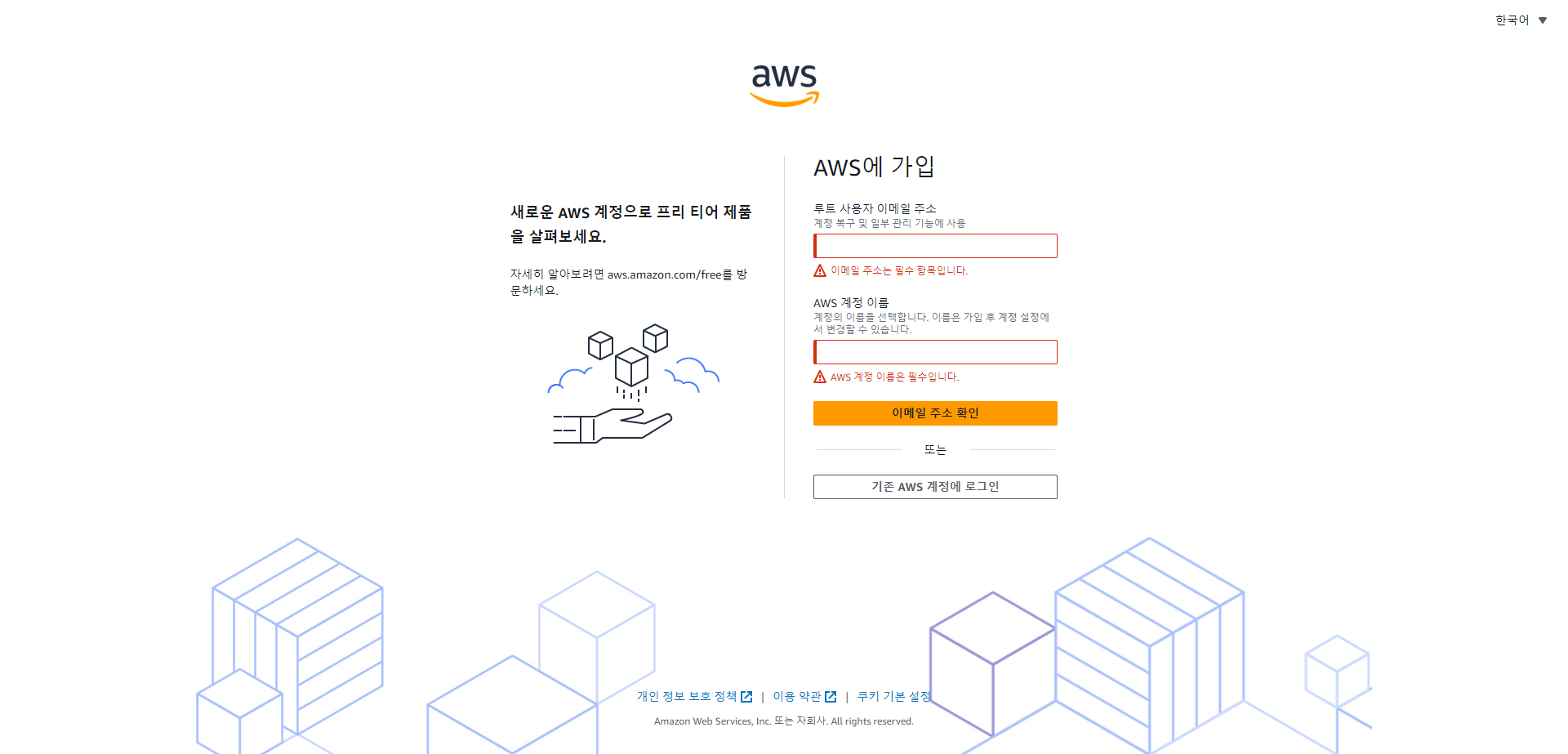 ** AWS 홈페이지에 접속하여 회원가입을 진행 합니다.