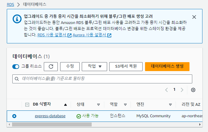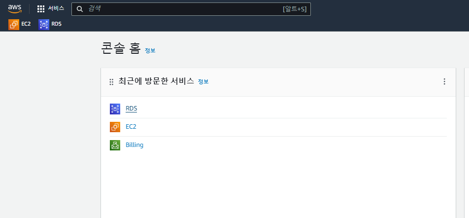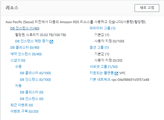 ** 생성 후 콘솔 홈에서 RDS를 클릭 -> 리소스 DB인스턴스로 이동합니다.