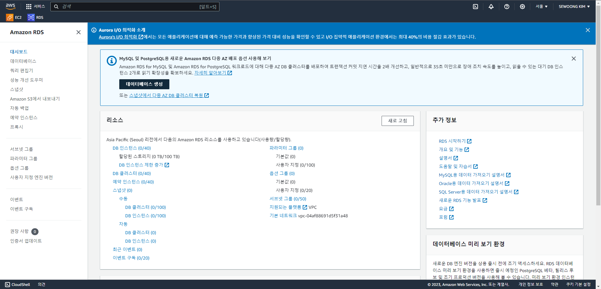 # RDS 인스턴스 생성 방법