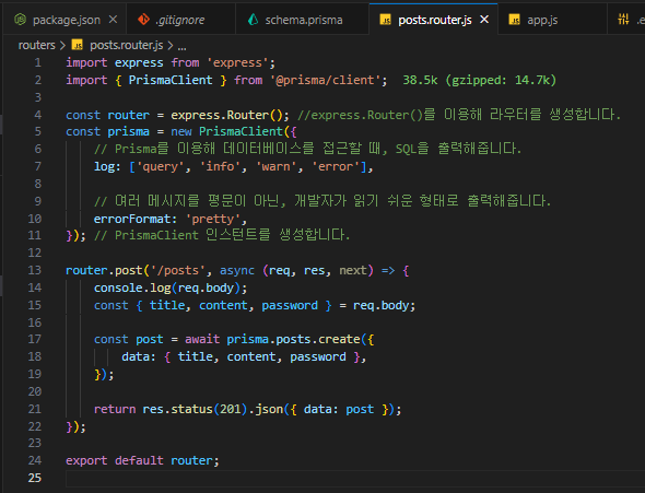 # express, prisma, @prisma/client 라이브러리를 설치합니다. yarn add express prisma @prisma/client