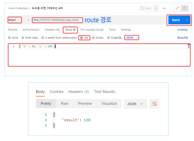 Postman에서 Send 클릭시 정상적으로 작동하는 것을 확인 할 수 있습니다.