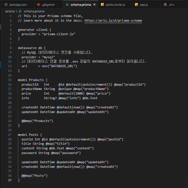 # 설치한 prisma를 초기화 하여, prisma를 사용할 수 있는 구조를 생성합니다. npx prisma init