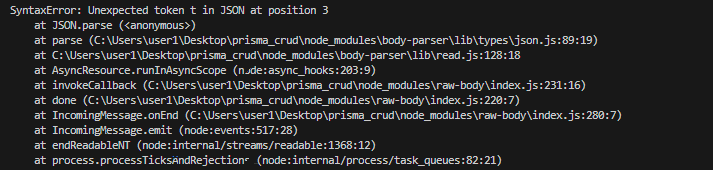 ** JSON형태로 결과 값이 나오기를 기대했지만 실패 > VSCode 확인(SyntaxError:Unexpected token t in JSON at position 3 발생)