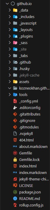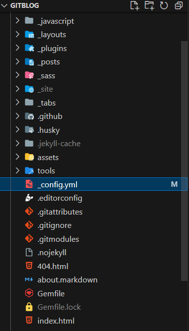 위에 과정이 끝났다면 Jekyll 테마 설치하기에 앞서, chirpy 개발자가 커스터마이징한 설정파일을 그대로 다운 받았기 때문에 초기화해야합니다. Window에서는 커맨드를 지원하지 않기 때문에 직접 수정해야합니다.