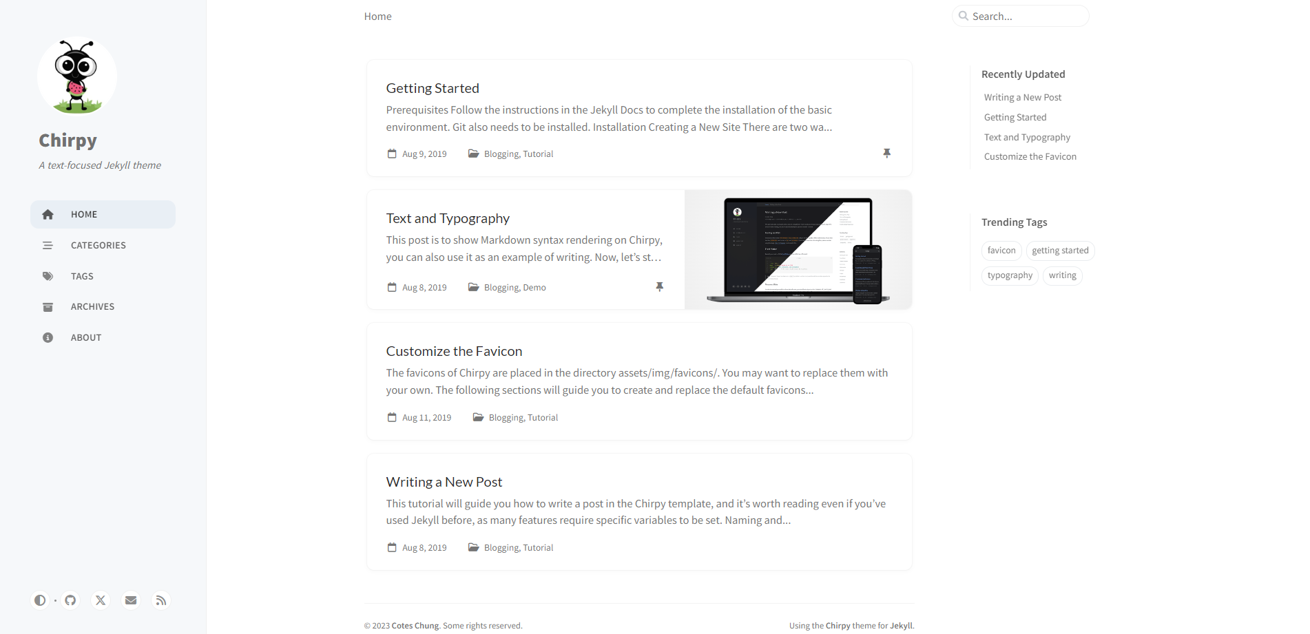 ** Jekyll Themes chirpy Design (대략적으로 이런 느낌입니다.)