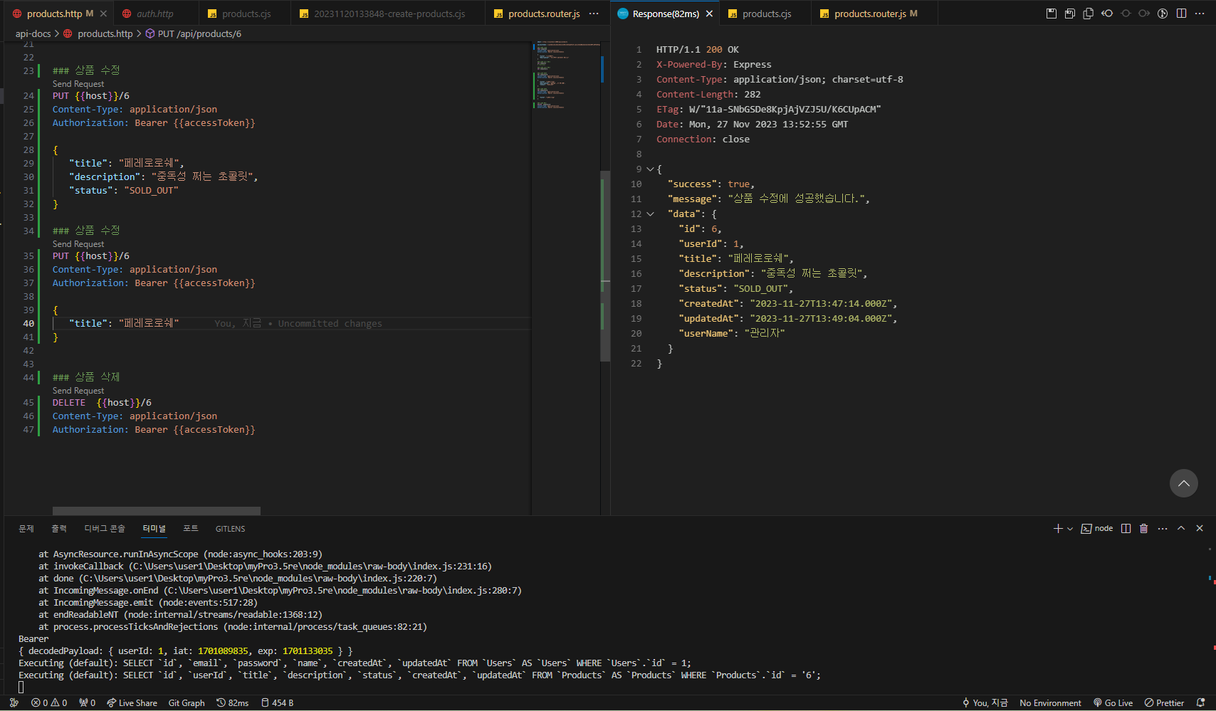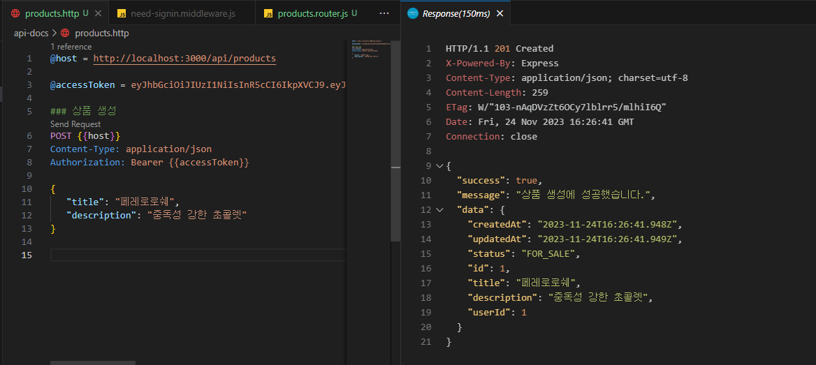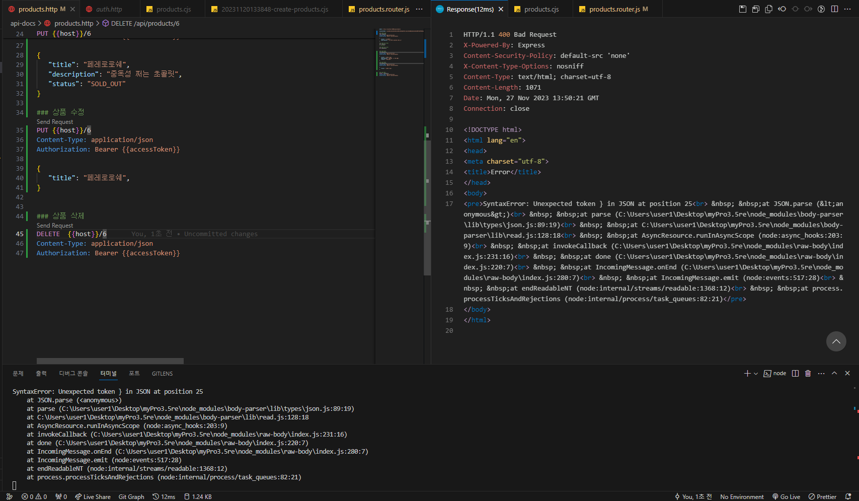 같은 실수를 반복하지 않고 에러 처리에 익숙해지고자 부끄럽지만 TIL(error)를 시작합니다.# 1. api-docs 파일안에 products.http 생성 후 상품 생성 테스트 중 에러 발생