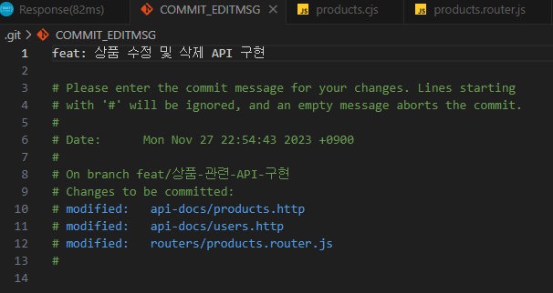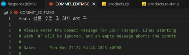 `Enter` 후 메시지를 편집하고 저장합니다. (수정 전)