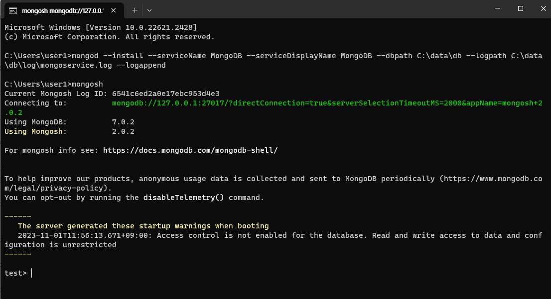 MongoDB가 잘 설치되었는지 확인해봅니다.